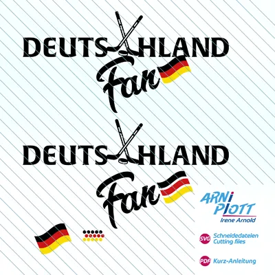 Du möchtest deinem Fan-Outfit einen besonderen Glanz verleihen? Kein Problem! Die Datei enthĂ€lt zusĂ€tzlich eine Schablone fĂŒr eine Deutschland-Fahne, perfekt geeignet fĂŒr Glitzerfolie oder eine Strass-Applikation auf deinem Shirt. đ